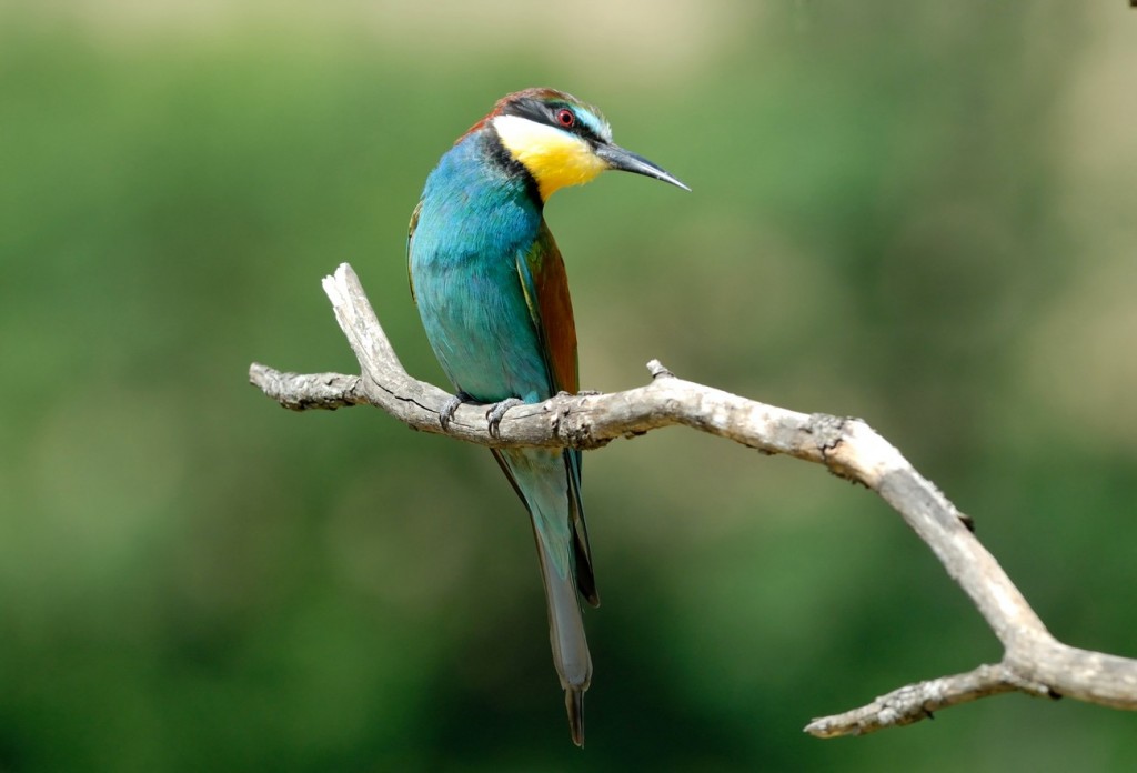 Le Guêpier d’Europe n’est pas un oiseau discret. Très coloré, de la taille d’une grive à allure d’hirondelle, il émet sans cesse des cris roulés d’alarme ou de contact entre les divers membres de la colonie.